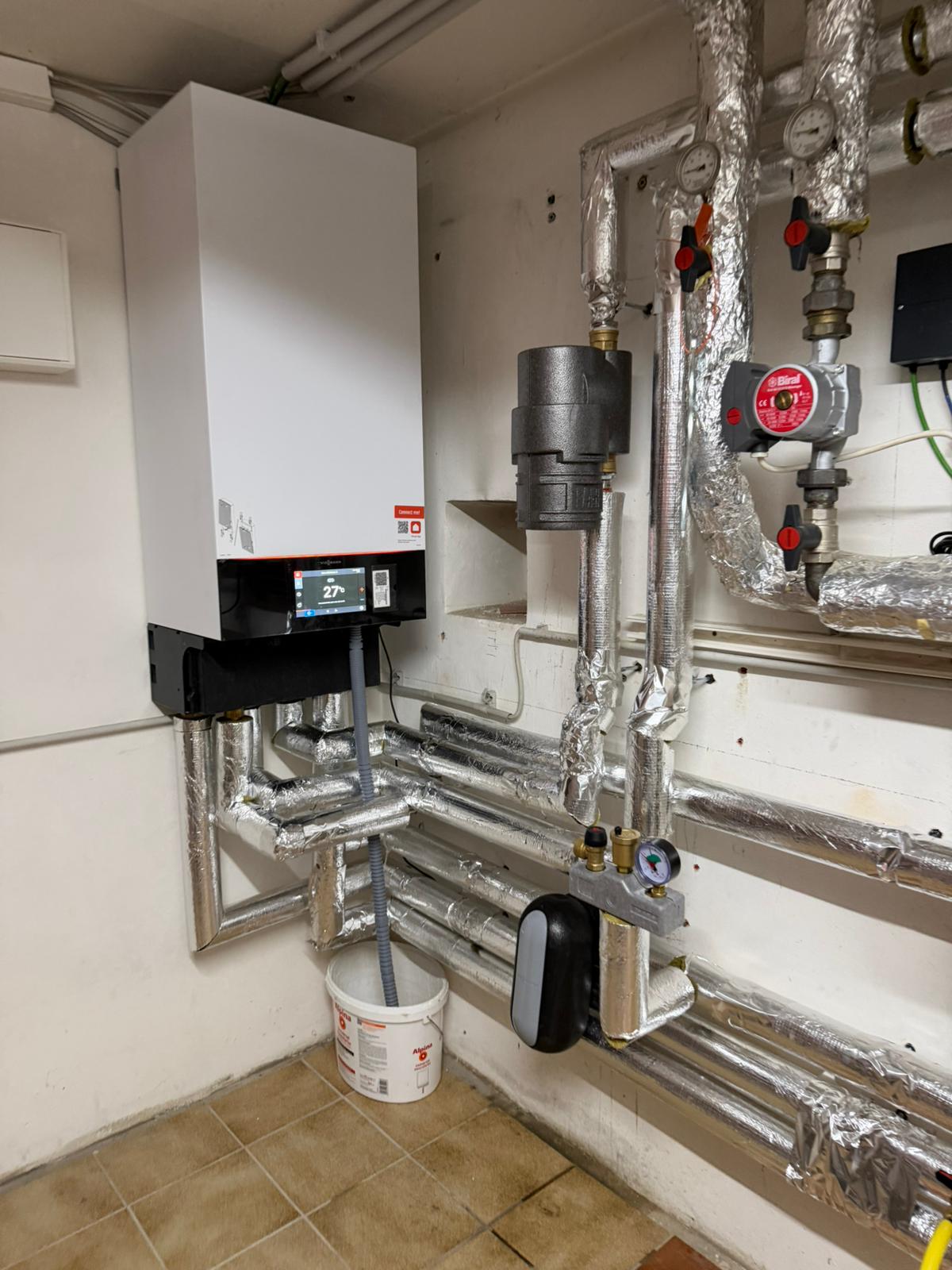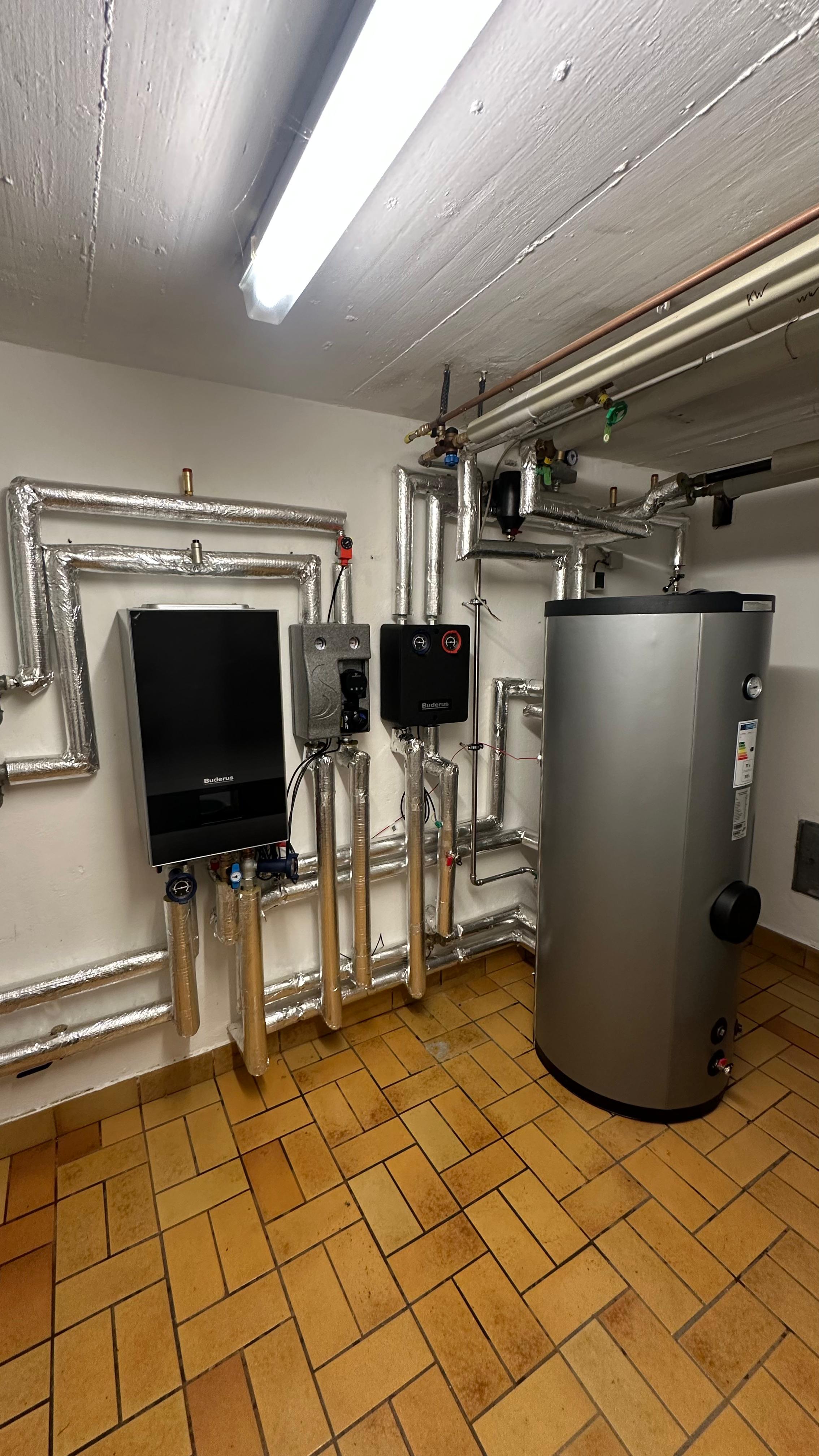 Heizungsmodernisierung in einem Wohn- und Geschäftshaus mit effizienter Luft-Wasser Wärmepumpe und vollständiger Förderabwicklung.